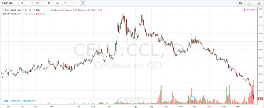 Gráfico de la acción de Celulosa Argentina en CCL.
